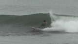 この動きはボードの推進力も生み出すようだ。波がタルくなり消えてしまいそうな所で左右に繰り返すと、そのまま進み続けインサイドの再び掘れるセクションまで繋ぐことができた。