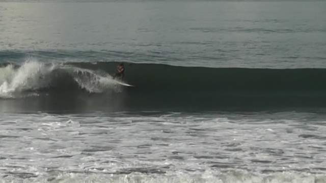 テイクオフはそれほどハードではなく乗れたが、その先が早い。バックサイドのこんな早い波でボードをコントロールできるはずもなく、ただ肩だけ振り続けた。