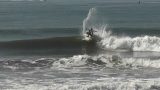 まず、テイクオフはさすがに早くうねりから乗れている。そこからダウンザラインで一気にスピードが出る。本人が加速させているのではなく勝手にスピードが出てるようだ。
